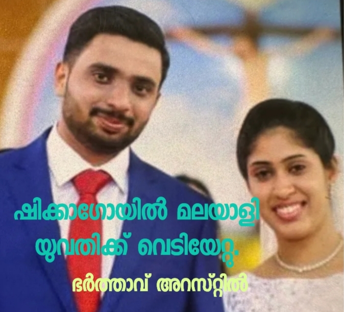 ഷിക്കാഗോയിൽ ഗർഭിണിയായ മലയാളി യുവതിക്ക് വെടിയേറ്റു; വെടിയുതിർത്തത് ഭർത്താവ് .