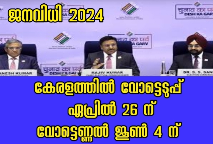 ലോക്സഭാ തെരഞ്ഞെടുപ്പ് തിയ്യതി പ്രഖ്യാപിച്ചു,7 ഘട്ടങ്ങളില് വോട്ടെടുപ്പ്, കേരളത്തില് ഏപ്രില് 26 ന്