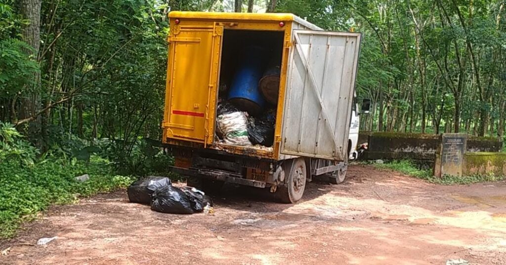 പരിശോധനയിൽ പരാതിയിൽ കഴമ്പുണ്ടെന്ന് അധികൃതർ കണ്ടെത്തി.വാഹനത്തിന്റെ ഉള്ളിൽ പ്ലാസ്റ്റിക് ബാഗുകളികളിലും ചാക്കുകളിലും ആണ് മാലിന്യം നിറച്ച് സൂക്ഷിച്ചിരുന്നത്.രാത്രി കാലങ്ങളിൽ
