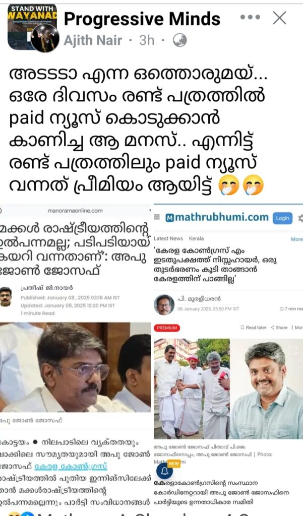 ഇത് മക്കൾ രാഷ്ട്രീയമല്ലേ ജോസഫേ…! പണ്ട് പറഞ്ഞതെല്ലാം വിഴുങ്ങി മകനെ നേതാവാക്കിയ പി.ജെ ജോസഫിനും നേതാക്കൾക്കും എതിരെ അതിരൂക്ഷ വിമർശനവുമായി കേരള കോൺഗ്രസ് എം സൈബർ പോരാളികൾ
