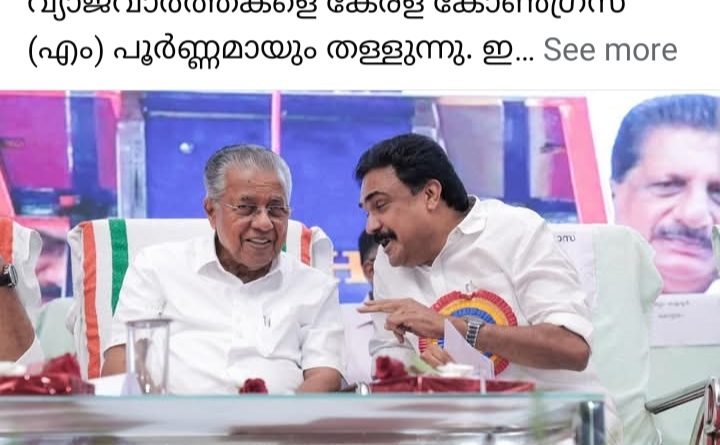 മുന്നണിമാറ്റം സംബന്ധിച്ചുള്ള വ്യാജവാര്ത്തകളെ കേരള കോണ്ഗ്രസ് (എം) പൂര്ണ്ണമായും തള്ളുന്നു. ഇടതുമുന്നണിയുടെ അവിഭാജ്യഘടകമായ കേരളാ കോണ്ഗ്രസ് (എം) മുന്നണിയെ രാഷ്ട്രീയമായി ശക്തിപ്പെടുത്തുന്നതിനും മുന്നണിയുടെ ജനകീയ അടിത്തറ വിപുലപ്പെടുത്തുന്നതിനുമായി നിരന്തരം പരിശ്രമിക്കുകയാണ്. നേതൃസ്ഥാനത്തിന്റെ പേരില് കലഹിക്കുന്ന യു.ഡി.എഫിനെ രക്ഷിക്കാന് ചില കേന്ദ്രങ്ങള് തുടര്ച്ചയായി വ്യാജവാര്ത്തകള് പ്രചരിപ്പിക്കുകയാണ്. ത്രിതല പഞ്ചായത്ത് തെരെഞ്ഞെടുപ്പിലും, അസംബ്ലി തെരെഞ്ഞെടുപ്പിലും ഇടതുമുന്നണിക്ക് അഭിമാനകരമായ വിജയം സമ്മാനിക്കാന് പാര്ട്ടി ഘടകങ്ങളെ പൂര്ണ്ണമായും സജ്ജമാക്കുന്നതിനുള്ള പ്രവര്ത്തനങ്ങള് താഴെ തട്ടില് നടക്കുകയാണ്.