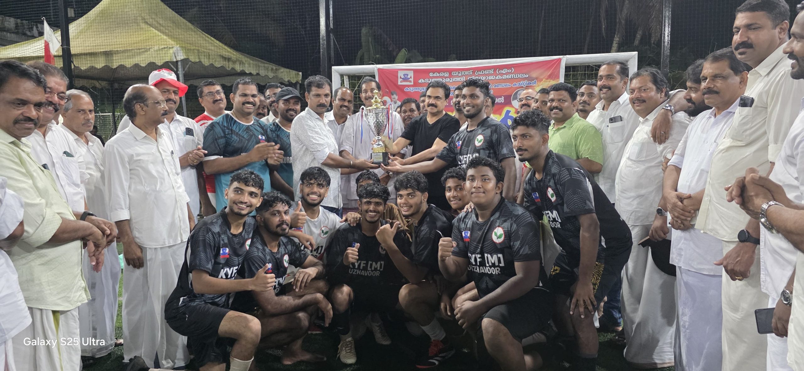 മാഞ്ഞൂർ : കേരള യൂത്ത് ഫ്രണ്ട് ( എം ) കടുത്തുരുത്തി നിയോജകമണ്ഡലം കമ്മിറ്റി സംഘടിപ്പിച്ച കെഎം മാണി മെമ്മോറിയൽ എവറോളിങ് ട്രോഫിക്ക് വേണ്ടിയുള്ള ഇൻ്റർ നിയോജക മണ്ഡലം ഫുട്ബോൾ മേളയിൽ ഉഴവൂർ മണ്ഡലം വിജയികളായി. മത്സരങ്ങളുടെ ഉദ്ഘാടനം പാർട്ടി സംസ്ഥാന ജനറൽ സെക്രട്ടറി സ്റ്റീഫൻ ജോർജും നിയോജകമണ്ഡലം പ്രസിഡന്റ് തോമസ് ടി.കീപ്പുറവും തമ്മിൽ പന്ത് തട്ടി സ്റ്റീഫൻ ജോർജ് ഗോളടിച്ച് ഉദ്ഘാടനം ചെയ്തു.ഫൈനലിൽ മാഞ്ഞൂർ മണ്ഡലം കമ്മിറ്റിയെയാണ് ഉഴവൂർ പരാജയപ്പെടുത്തിയത്. മത്സരത്തിൽ മാഞ്ഞൂർ മണ്ഡലം കമ്മിറ്റി, കുറവിലങ്ങാട് മണ്ഡലം കമ്മിറ്റി, മരങ്ങാട്ടുപിള്ളി മണ്ഡലം കമ്മിറ്റി ടീമുകൾ രണ്ടും മൂന്നും നാലും സമ്മാനത്തിന് അർഹരായി മാഞ്ഞൂർ ബീസ്സാ ടെർഫിൽ കടുത്തുരുത്തി നിയോജകമണ്ഡലത്തിലെ 12 മണ്ഡലം കമ്മിറ്റികൾ 12 ടീമുകളായി മാറ്റുരച്ച മൽസരത്തിൽ കേരള കോൺഗ്രസ് (എം) ചെയർമാൻ ശ്രീ ജോസ് കെ മാണി എം പി മുഖ്യാതിഥിയായി പങ്കെടുക്കുകയും സമ്മാനങ്ങൾ വിതരണം ചെയ്യുകയും ചെയ്തു. ക്വാർട്ടർ മത്സരങ്ങൾ പൂർത്തിയാക്കി സെമിഫൈനലും